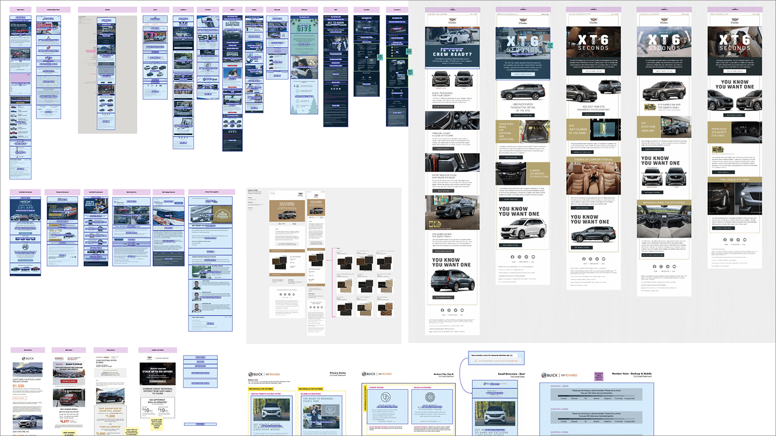We created a set of 12 plug-and-play components, each with configurable layout variations, reducing the time and effort to create marketing e-mails for several different General Motors brands including Chevrolet, Chevrolet Performance, GMC, Buick, Cadillac, Vehicle Purchase Program, Certified Pre-Owned, GM Fleet, OnStar, GM Card, eRewards, ACDelco, GM Recalls, GM Family First, and more. Yay!