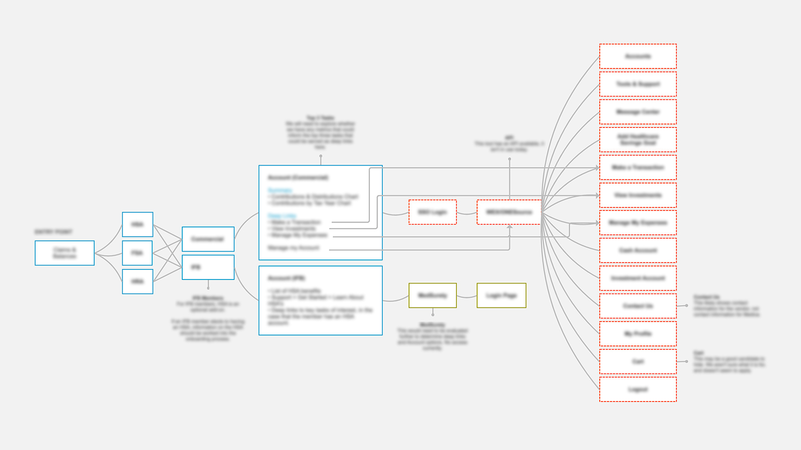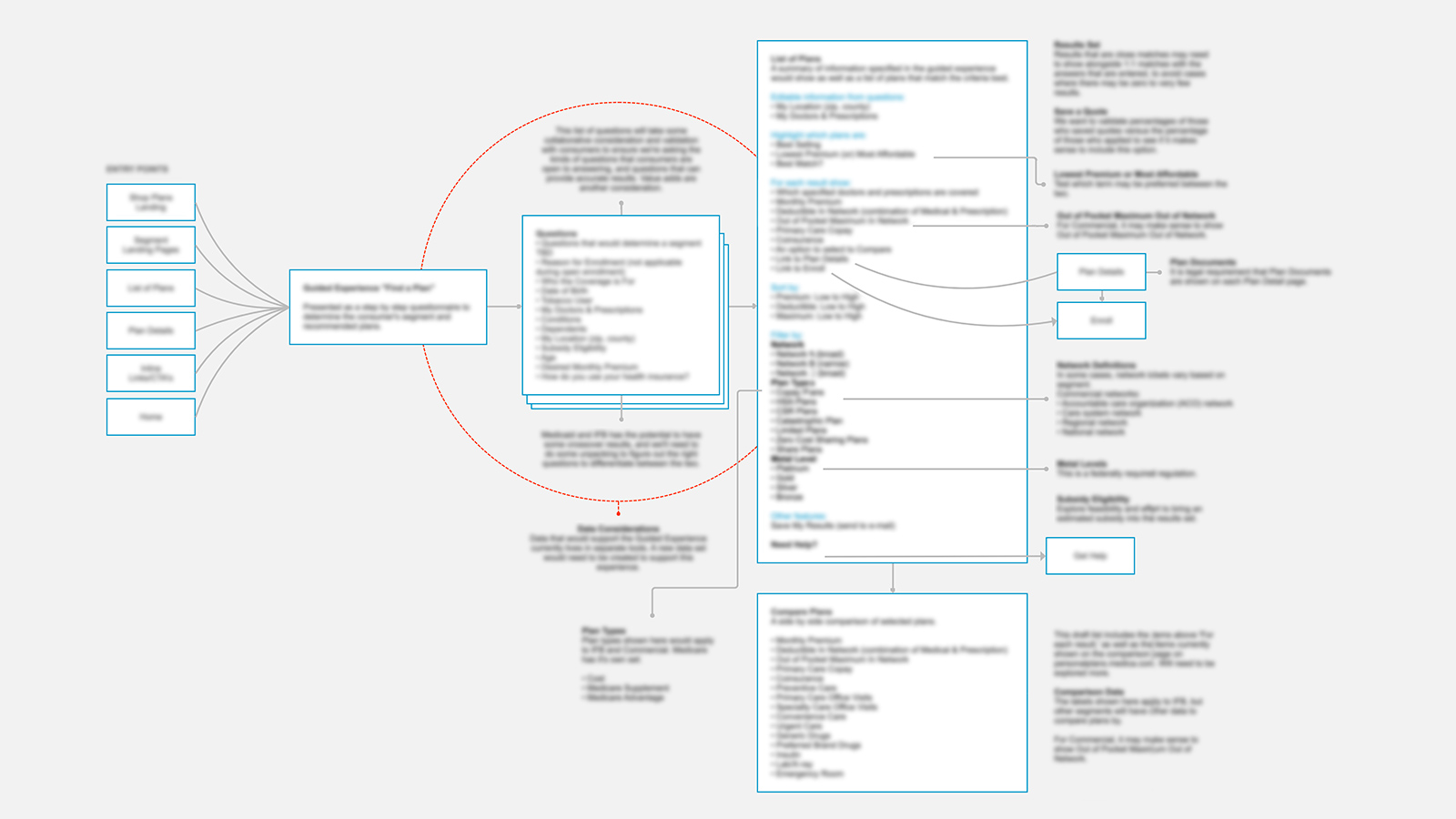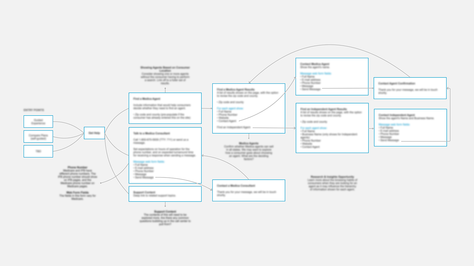 I collaborated closely with an SME at the Health Insurance Company to understand the current customer flow for these pain points, and to discuss the desired ideal state. These discussions unearthed some of the dependencies involved— whether it be third party tools, data, or otherwise—that would need to be in place to enable better experiences. We worked together to decide which features would be feasible for a first launch of the new experience, and which would need to be achieved in a future release.